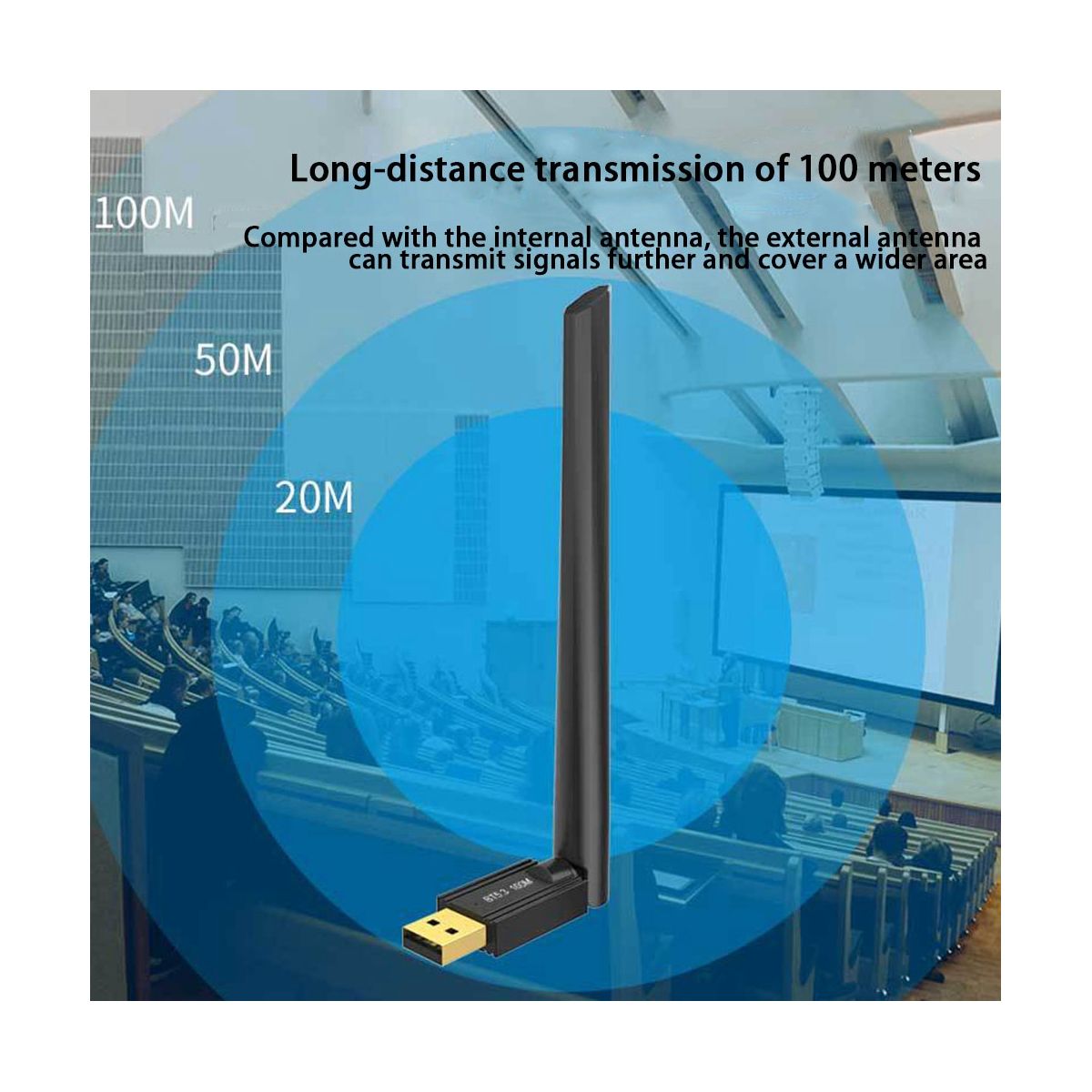 External 4dBi high-gain antenna has better performance, stronger transmitting signal and longer distance.