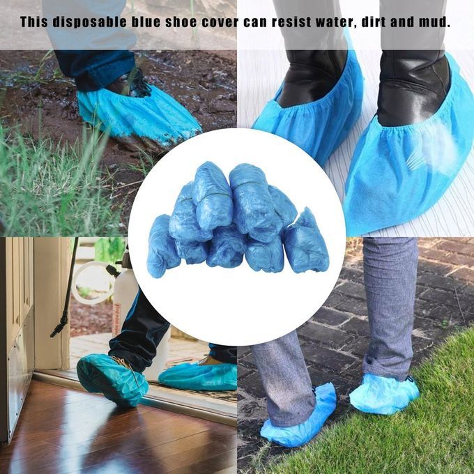 100P S Disposable Plasti Shoe Overs Rooms Outdoors Waterproof Rain-blue