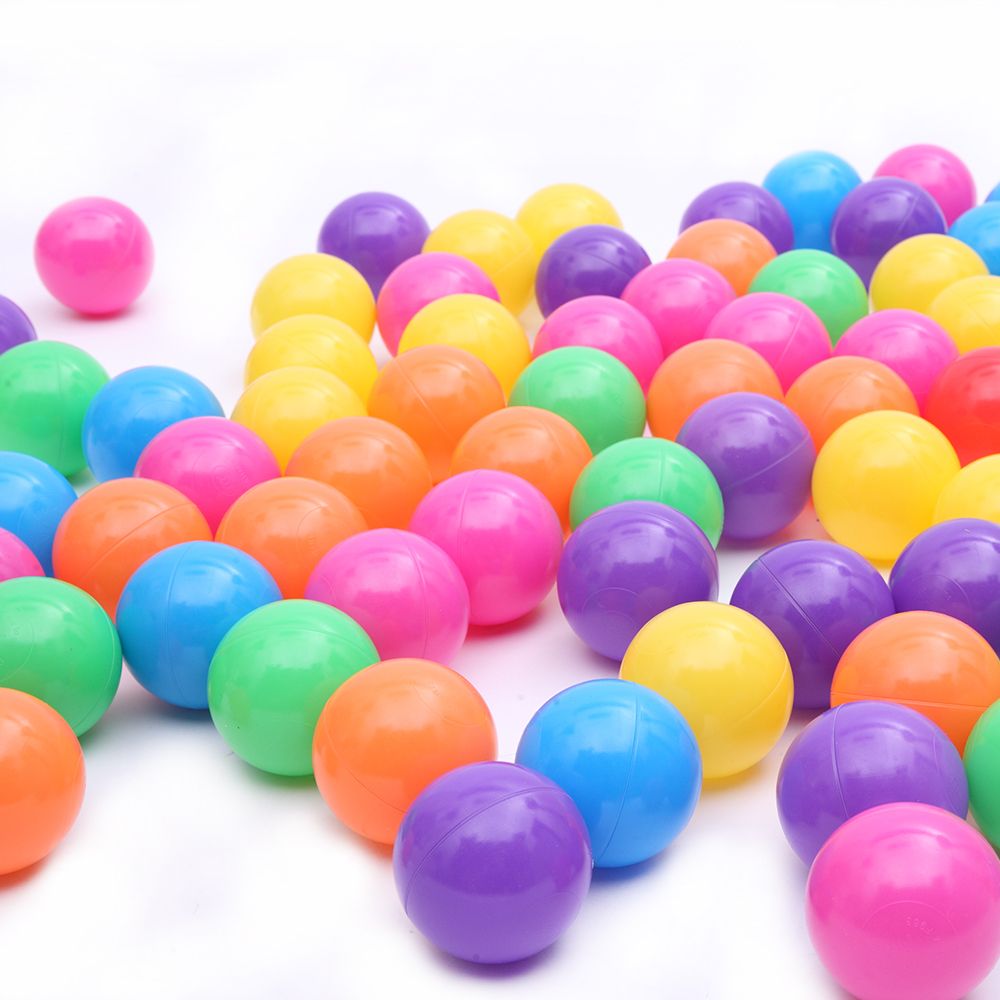 These plastic balls are great for ball pit, jumping castle and pools. They are safe to use and made to last a long time without having the air using a unique 2-stage blow molding process to ensure consistency of thickness, quality, smooth seam and surface. Play balls which can help to develop hand-eye coordination and promote physical activities. What is more, it is brand new and high quality. Safe and friendly to use, it is a good toy for your kids.