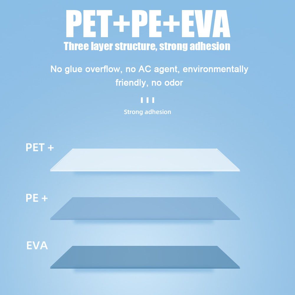 5:Upgrade EVA material:Corner fillet treatment,It is not easy to be scratched by sharp tools,Moisture proof, waterproof and fog proof。The three-layer structure of PET+PE+EVA is adopted, with strong viscosity, no glue overflow, no AC agent, and no odor
