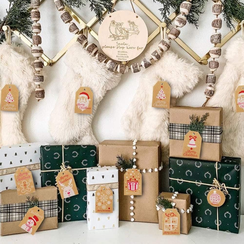 Detailed Information About The Product:QUANTITY-100pcs of Christmas gift tags in 10 styles, 2 rolls in different material(cotton&natural t).These gift tags are the perfect little Press to all of your gifts. the tags match a wide array of wrap and bags. Enjoy using these tags at Christmas.