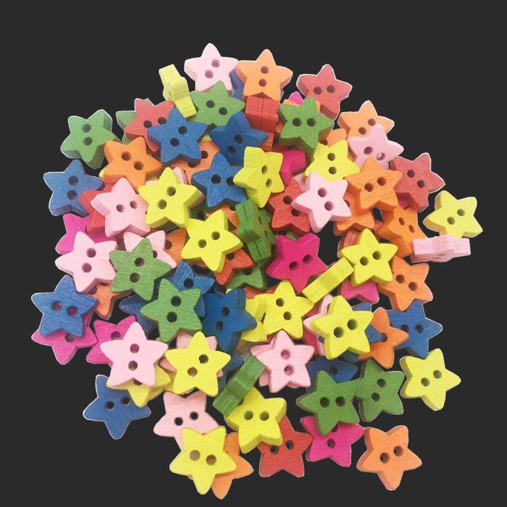 100 Piece Cartoon Star Wooden Buttons