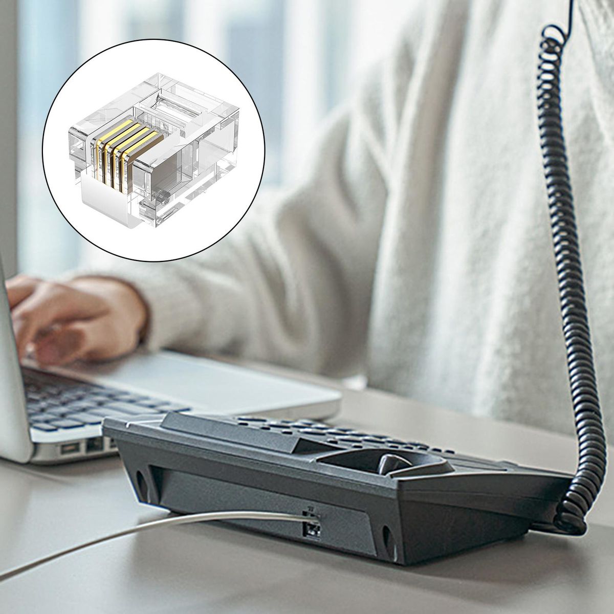 This telephone crystal connector uses golden-plated contact, which has good conductivity and can bring you stable transmission, clear communication and high fidelity sound quality.