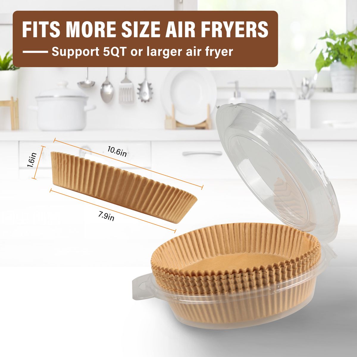 HIGH-QUALITY MATERIAL: The fryer liners are made of food-grade parchment paper, which is safe and healthy for using. The liners are waterproof, oil-absorbing and non-stick. It is also heat resistant. So you don\'t need to worry about the temperature gets too high in the air fryer.