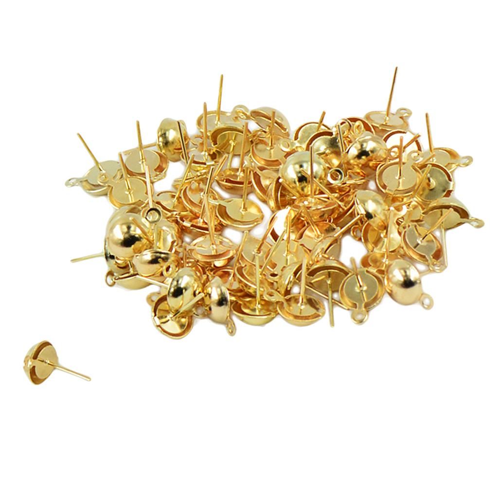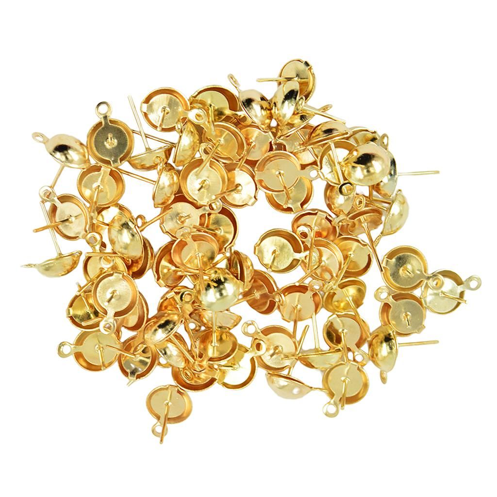 100 Pieces Half Round Earrings Blanks Base Cabochon Settings Findings Gold