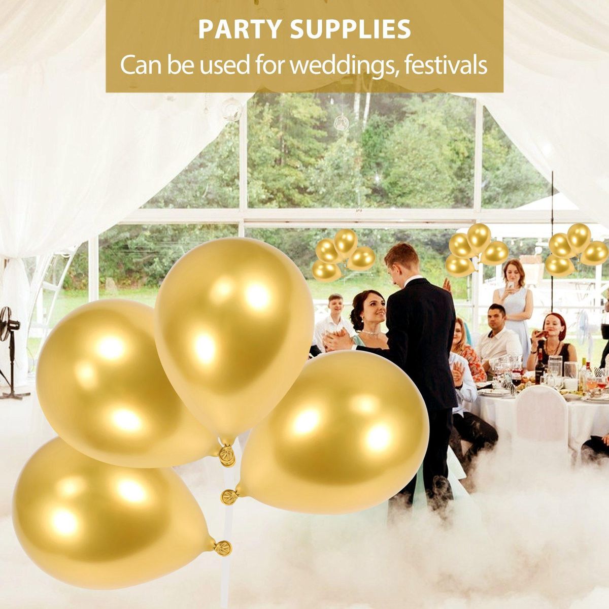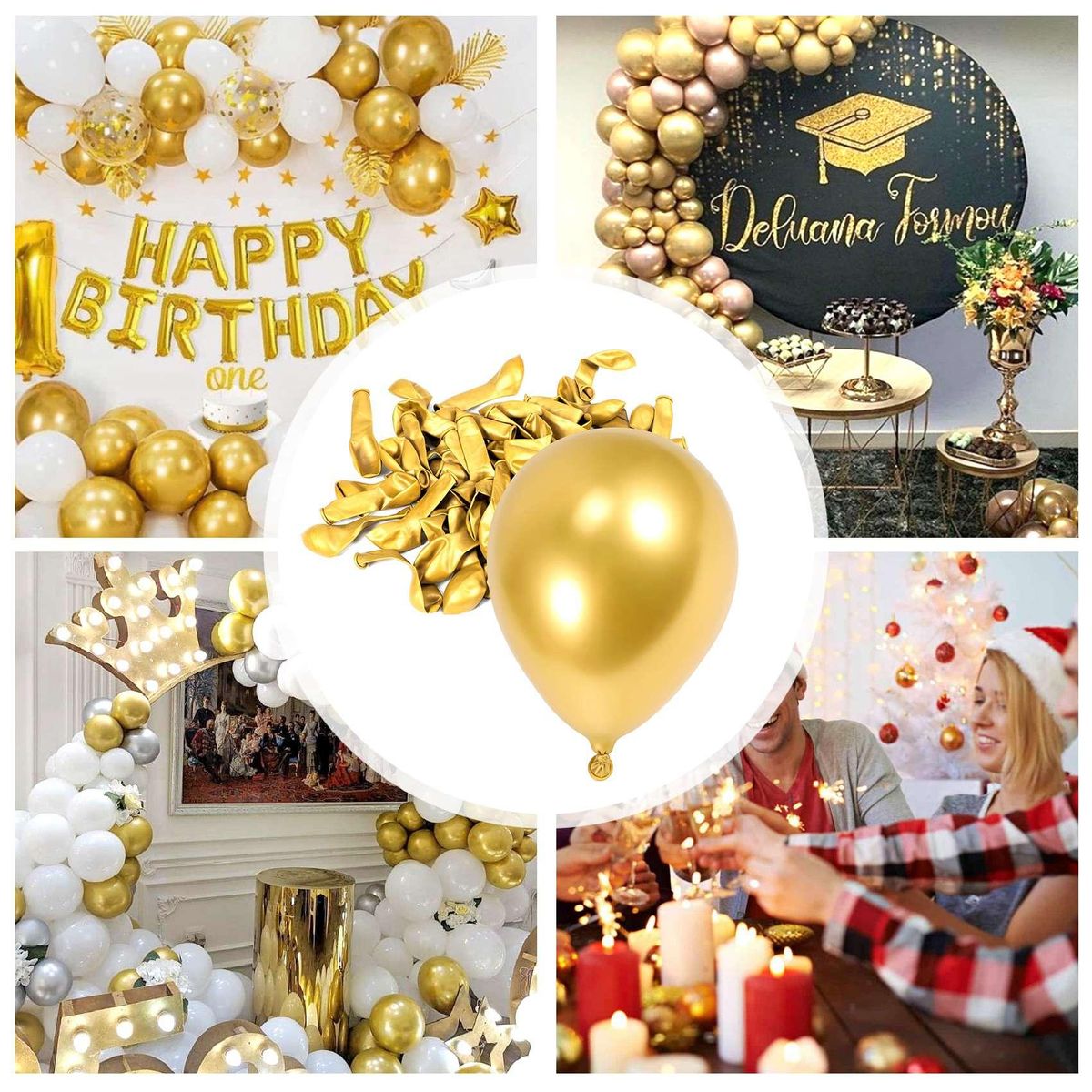 Detailed Information About The Product:[Gold Metallic Chrome Latex Balloons]You will get 100pcs metallic chrome gold latex balloons, these are enough to complete any decoration of the party.