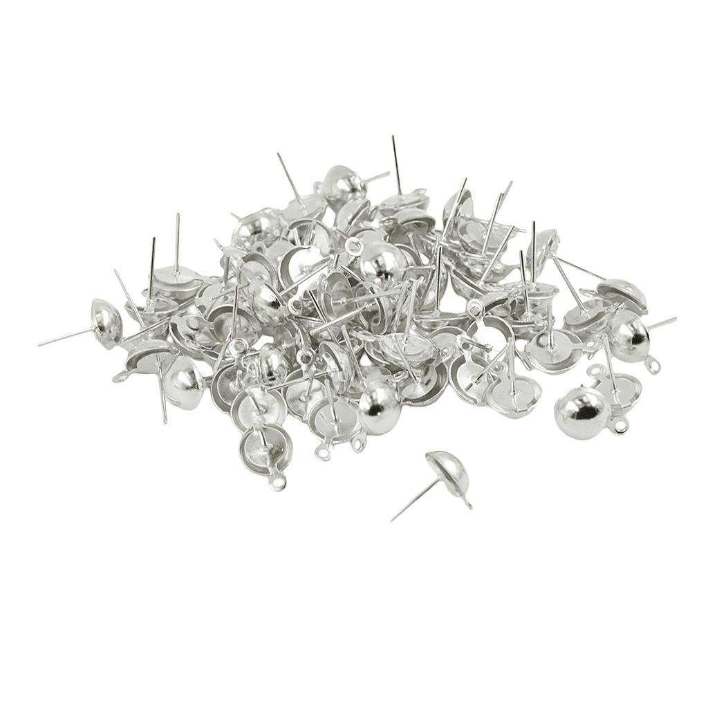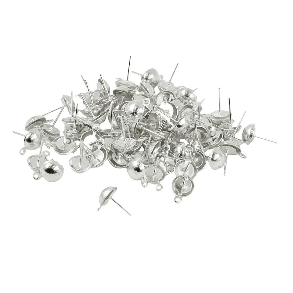 100 Pieces Half Round Earrings Blanks Base Cabochon Settings Findings Silver