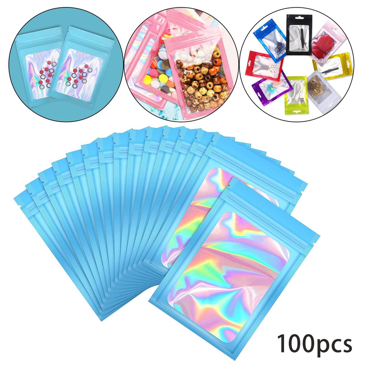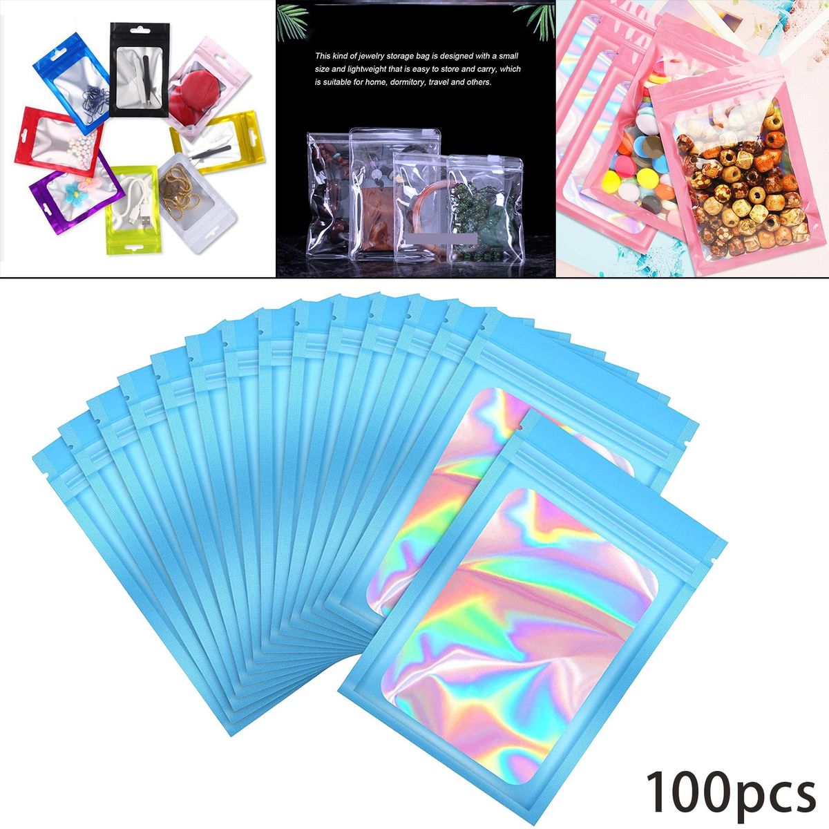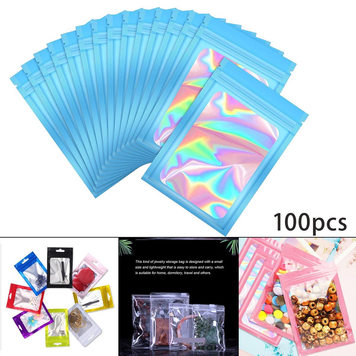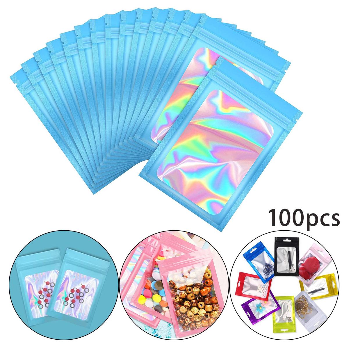 Smell Proof Mylar Bags;Smell Proof Mylar Bags Clear Window Container;Resealable Holographic Packaging Pouch Bag;Food Storage Eyelash Jewelry Electronics ;small packaging bags sealable airtight waterproof;eyelash bagspressed zip bracelet small business