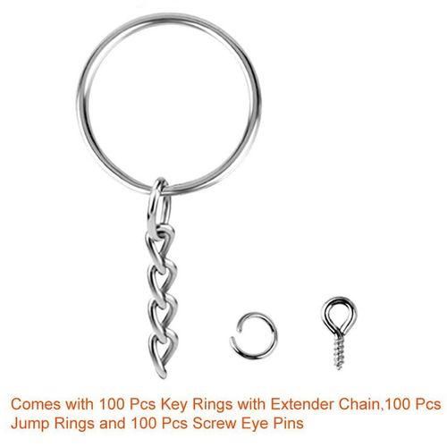 Paxcoo key rings with chain bulk comes with 100 pieces metal keychain rings with chain