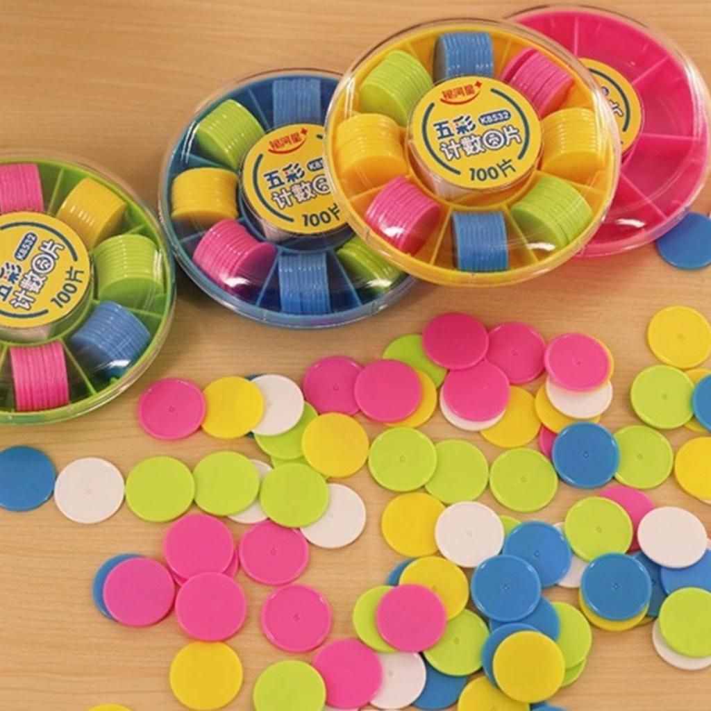 100 Pieces counters are enough for math games such as counting, sorting, grouping, addition, subtraction or bingo markers, etc.