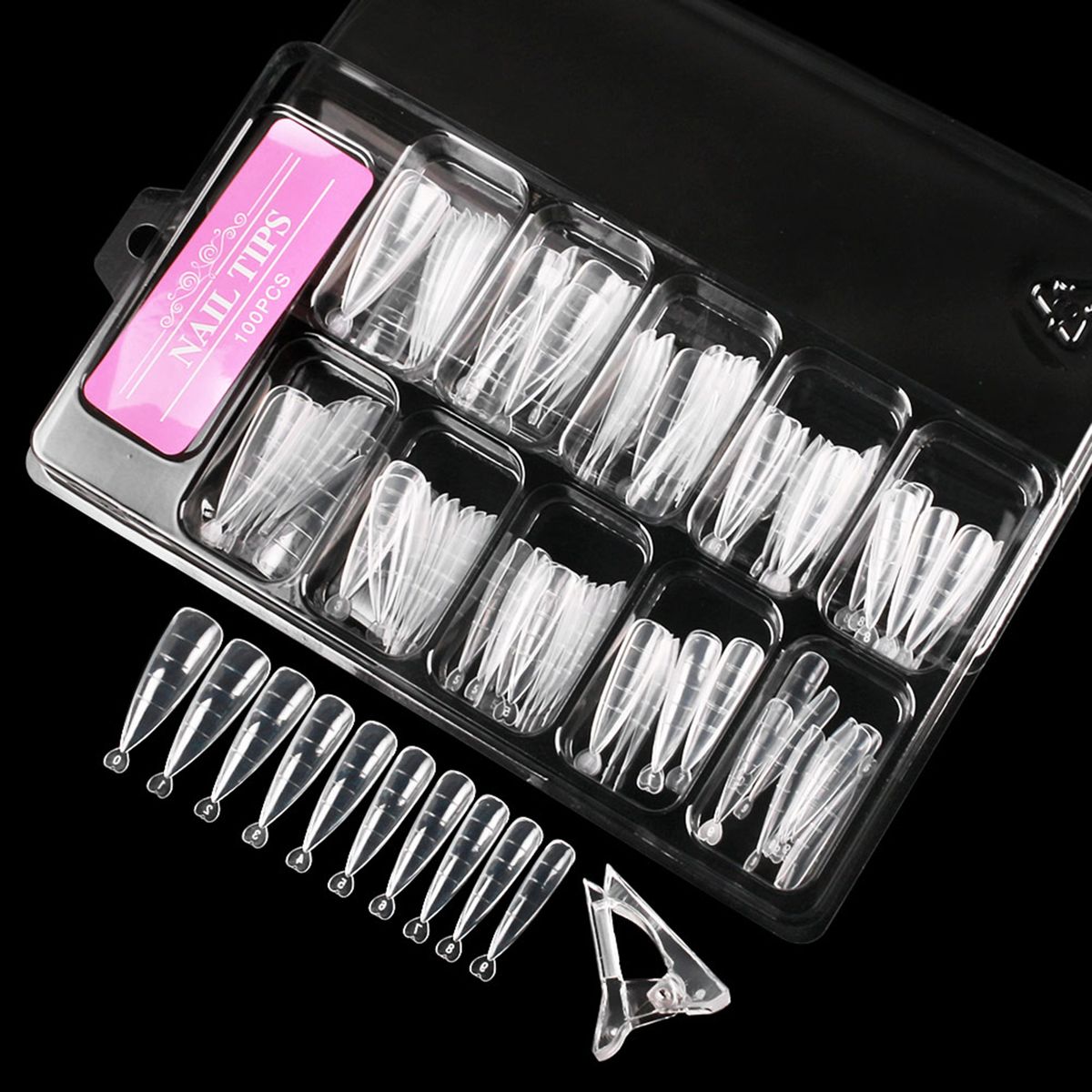 100 x Nail Tips,1 x Plastic Box,1 x Nail Clip,