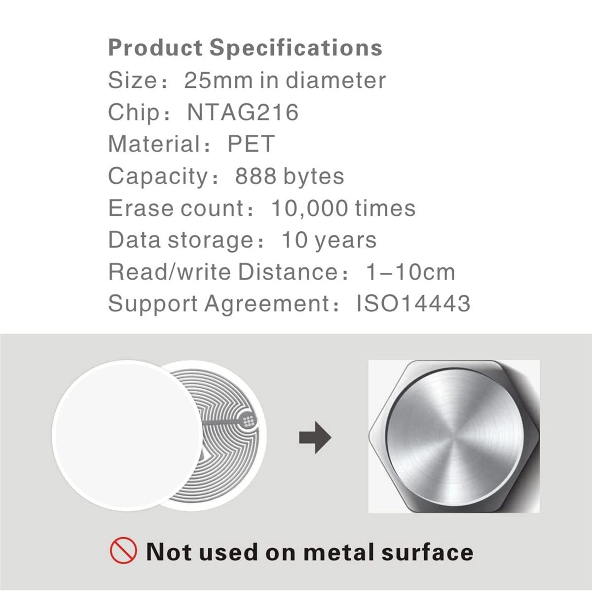 [ Size ] The package contains high-quality NTAG216 NFC labels with a diameter of 25mm/1 inch.