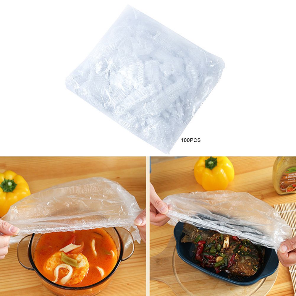1X 100pcs Reusable Durable Food Storage Covers Elastic Keep Fresh Food Plastic Wrap Dish Plate Clings Film For Refrigerator Kitchen