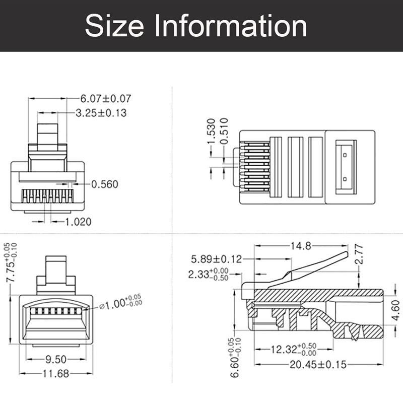 100Pcs RJ45 Connector 6U Gold Plated Pass Through100% The product is new and High Quality.
