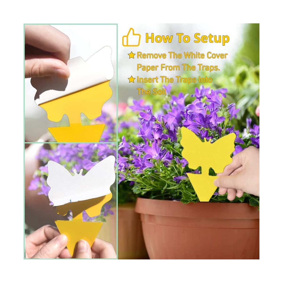 [Easy to Use] Tear off the protective film on the surface of the sticky trap and insert it into the soil of the vegetation you need to protect, or in kitchen to catch gnat.