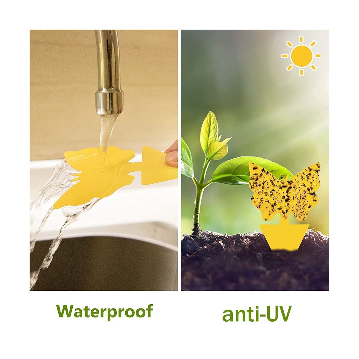 [More Lasting] Sticky traps with a very strong adhesive, both sides of our fruit fly trap is equipped with high-viscosity glue, uv resistance and waterproof properties.