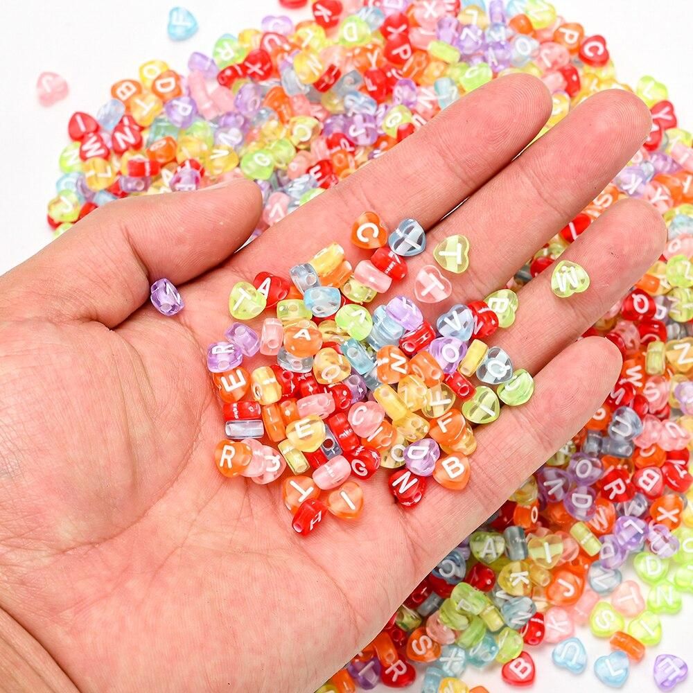 Buy 100pcs/lot Heart Acrylic Letter Beads Colorful Alphabet Loose Spacer Beads For Jewelry Making DIY Handmade Bracelet Necklace in Nigeria