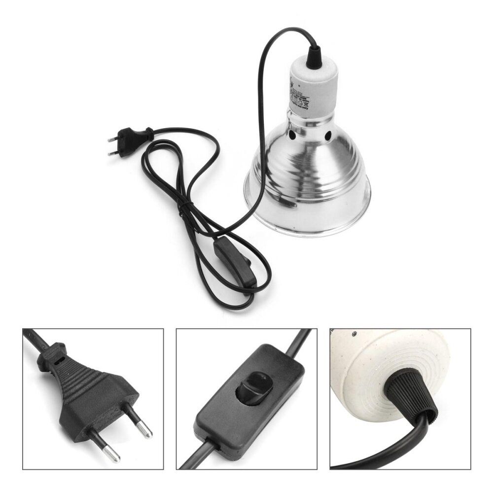 100W E27 Ceramic Heat UVA/UVB Lamp Light Holder Chicken Brooder Reptile Basking Black Silver