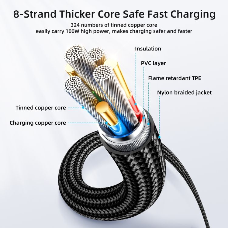 100W USB-C / Type-C to Type-C Fast Charging Cable, Cable Len