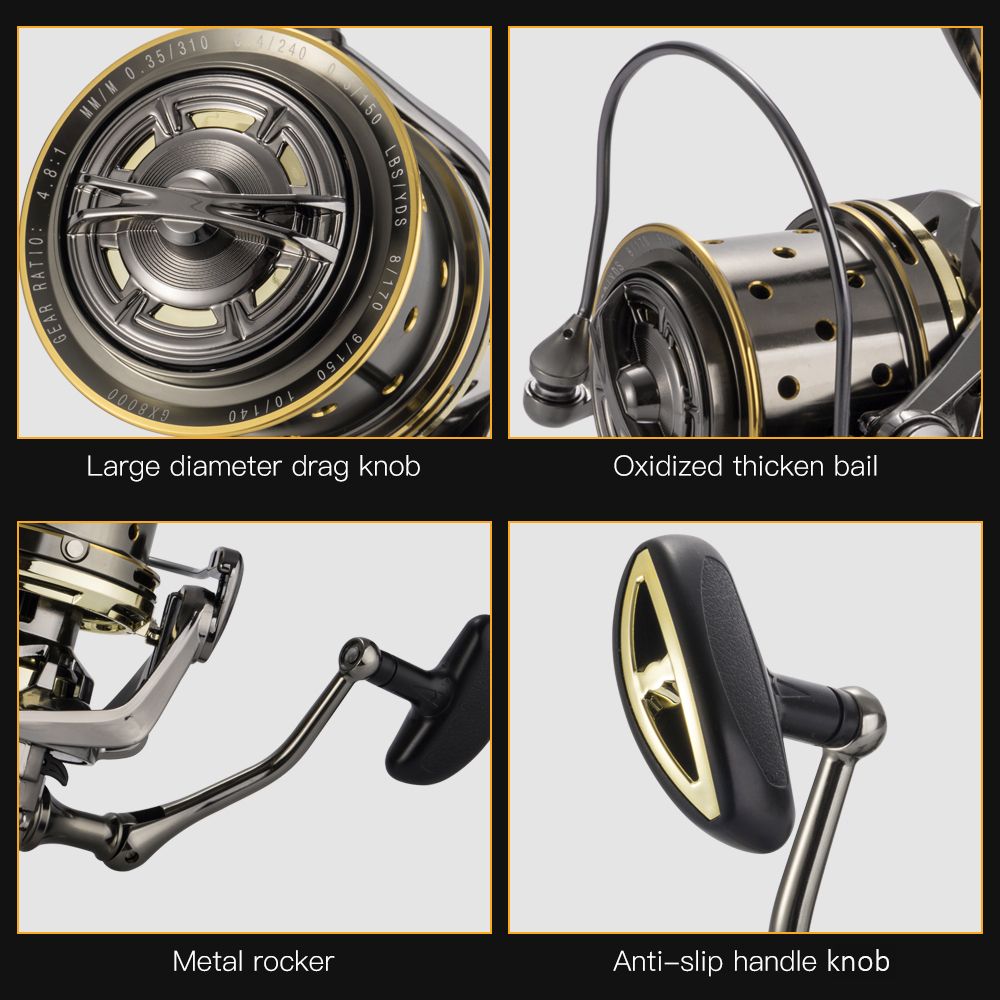 All-metal spool and stainless steel main shaft for durable and anti-corrosion.