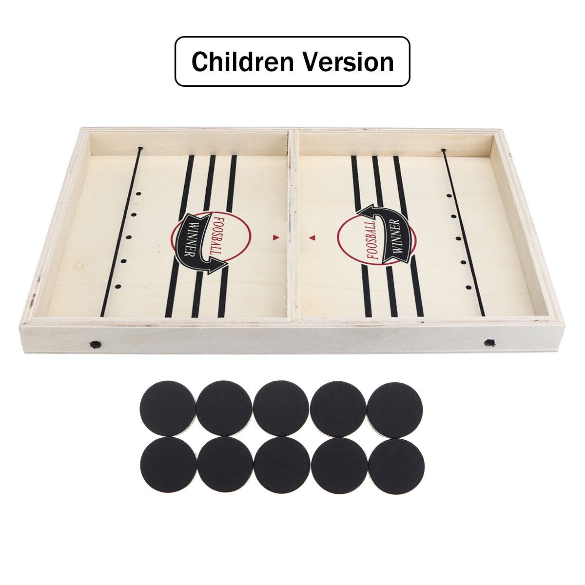 2. Start the game and place five pucks on each side of the board. Slide both ends of the elastic band into the side grooves so that they snap into place. The two players applauded the "High Ten" style to start the game.