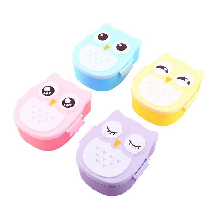 1050ML Owl Lunch Box Bento Food-safe Plastic Food Picnic Container Portable Box Blue