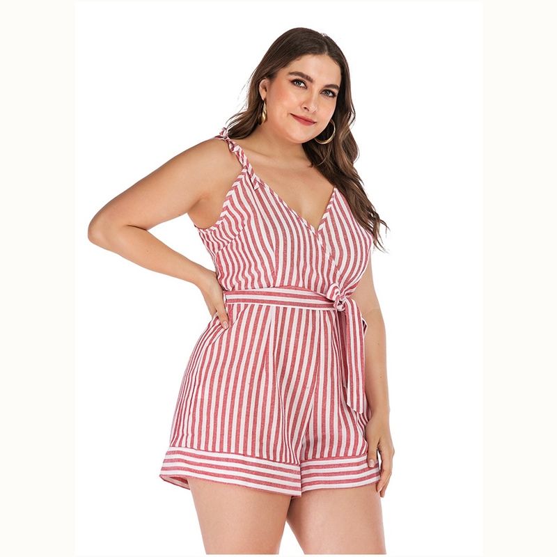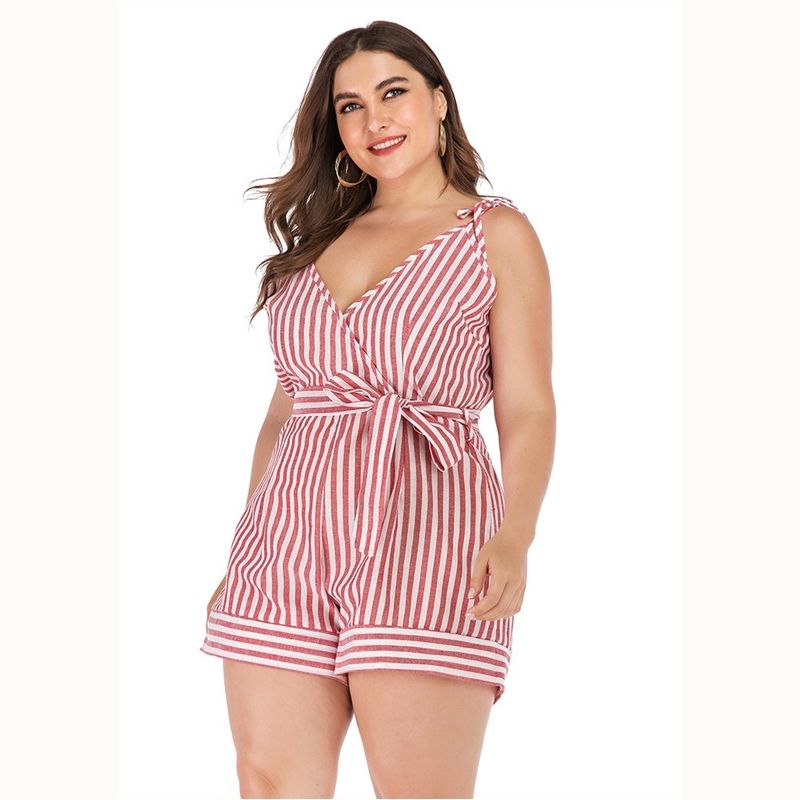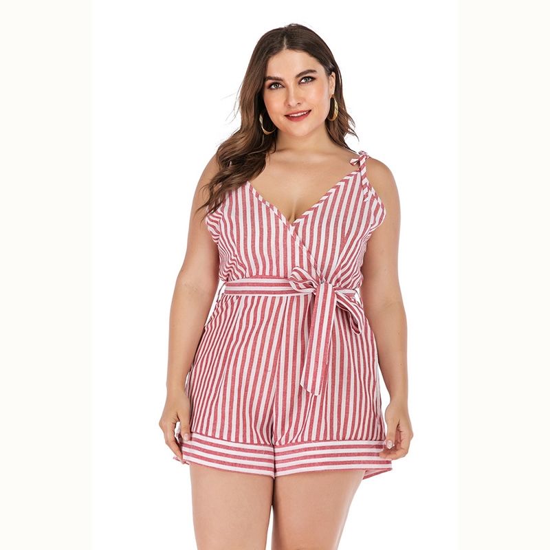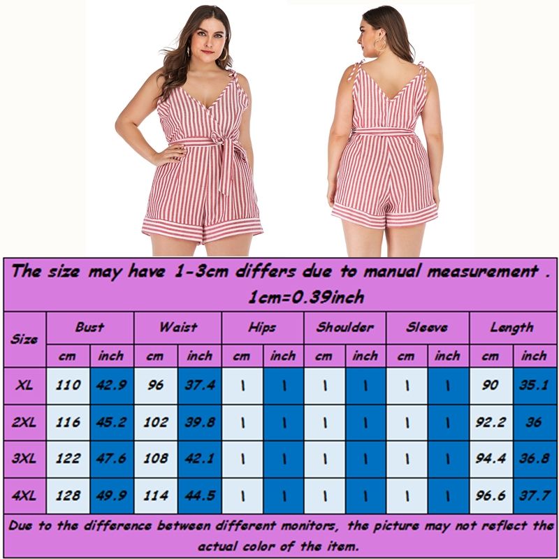 Size: XL, 2XL, 3XL, 4XL. Model Size FYR: Height: 171cm, Bust:106cm, Waist:76cm, Hips:120cm, Model wear size XL.❤This is v neck sleeveless jumpsuit !!❤Style: V Neck Sleeveless Slim Fit Plus Size Jumpsuit Romper.Please note that slight color difference should be acceptable due to the light and screen.What You Get:1 x Jumpsuit. FQA:1. Q: Why the item haven't shipped out?A: After you place the order, We will ship the item to the rehmie warehouse within 48 hours as soon as possible, and then rehmie warehouse will send the item to you. If you find the logistics status is"to be shipped", it may be because the rehmie warehouse has not yet been shipped. Please don't worry.2. Q: How can I choose the size?A:Please refer to the size chart and select the appropriate size according to your actual size.If you are not sure what size to choose, please call me. 3. Pls take note that all the clothes can not be returned or exchanged.4. All dimensions are measured by hand, there will be 2-3cm reasonable deviations. (1cm=0.39 inches). Pictures are only samples for reference. Due to the differences in monitor settings, the colors shown in the photograph may not correspond 100% to those in the items themselves. 5.For transportation needs, the cloth that you've received will have a fold phenomenon. Please don't worry, this fold situation will disappear after the first time you clear or ironing.
