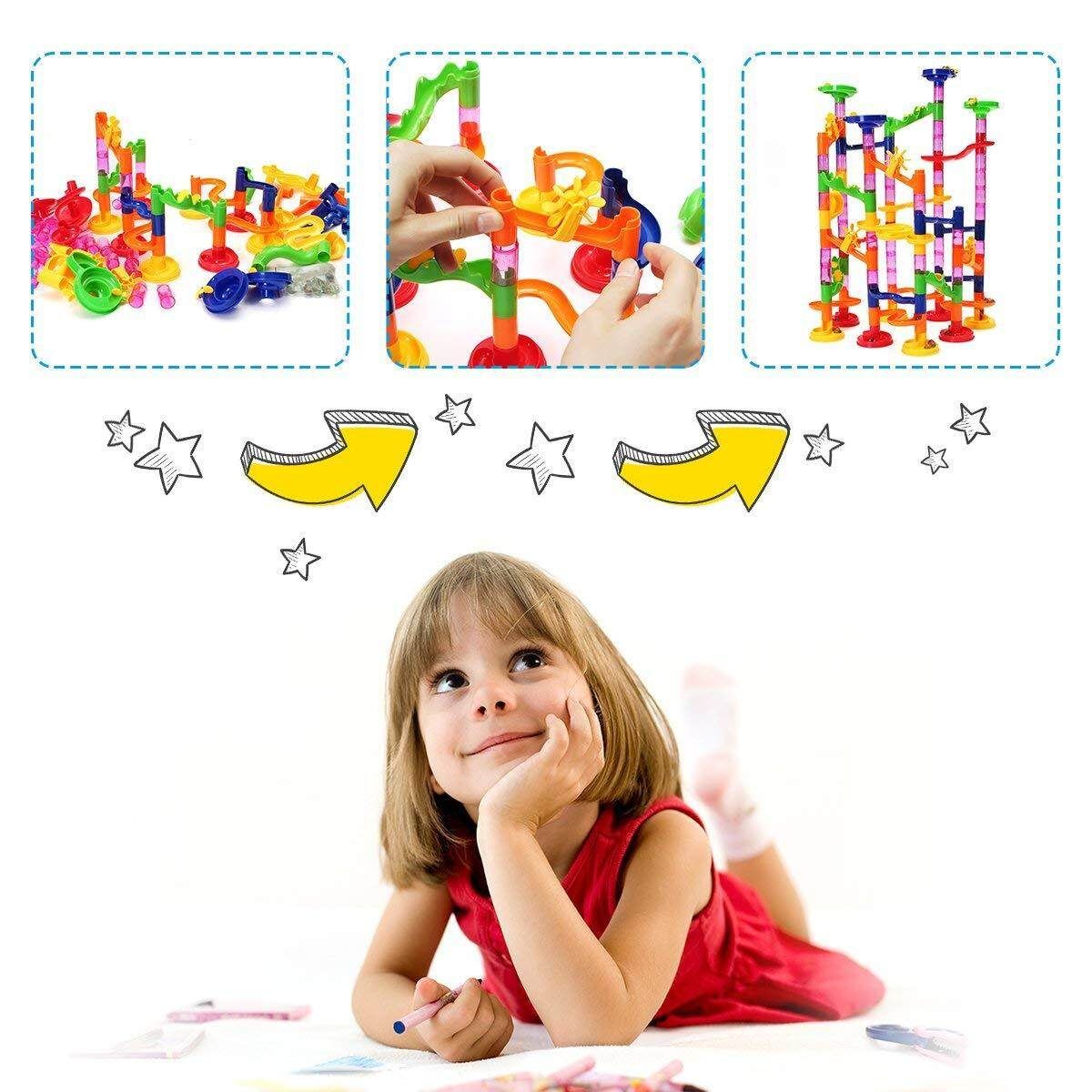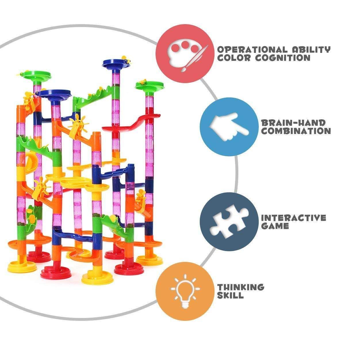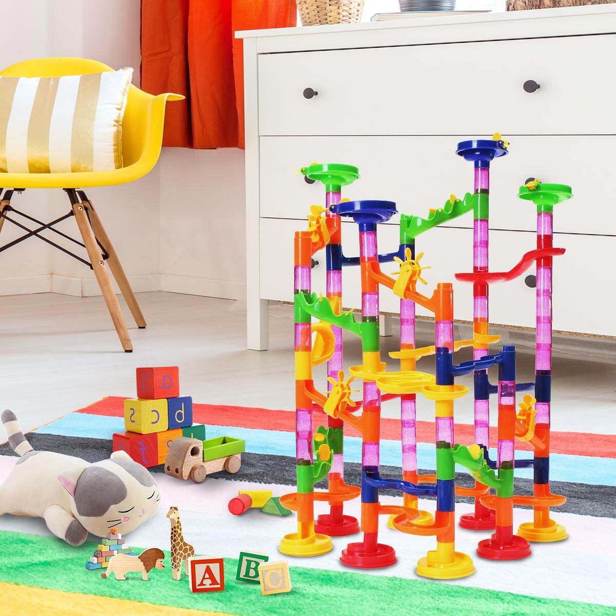 105-piece marble running set includes 75 structure pieces and 30 marble balls