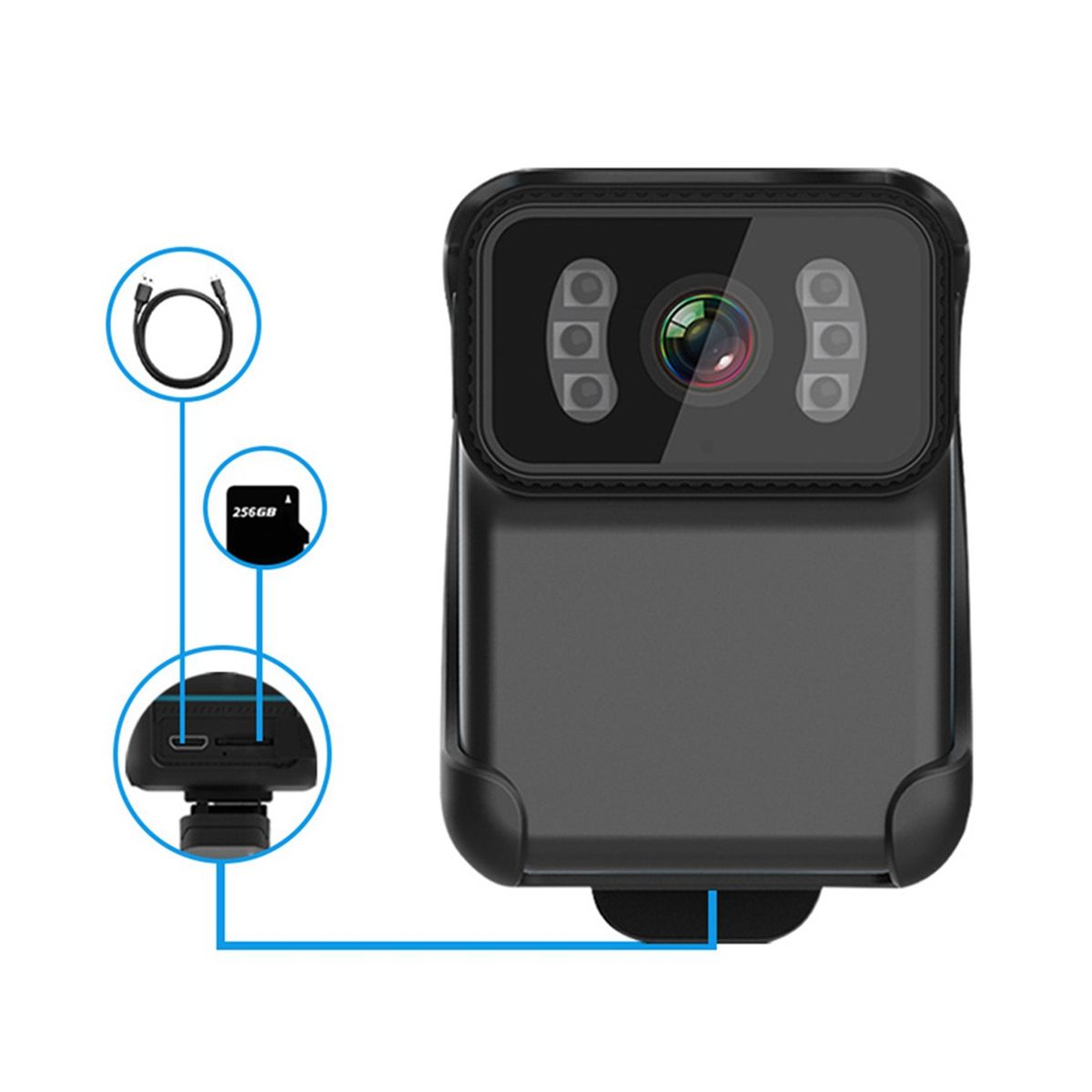 Built-In 900mah High-Capacity Battery: Strong Battery Life And Long Standby Time. Support Multiple Power Supply Methods, Recording While Charging. The Memory Supports 256g/Tf Card: The Capacity Of The Tf Card Is Expanded, And More Important Information Can Be Recorded. 200w High-Definition Lens: 1080p Video Screen, No Frame Drop, No Card. Maximum Support For 256g Memory Card Storage. (Not Including Memory)