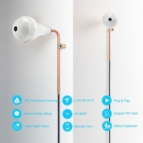 1X 1080P 360 LED degree Wireless IP Camera Bulb Light FishEye Smart Home CCTV 3D VR Camera 2MP Home Security Panoramic WiFi Camera