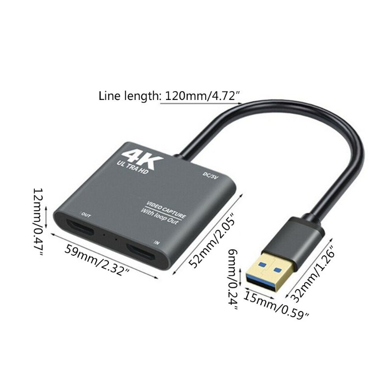 1080P 60fps Loop Out Broadcasting 4K HDMI-compatible USB3.0 Video Capture Card Conferencing Game teaching live broadcast Description: 100% and high quality 1080P 60FPS Full HD- Recording: The USB capture connects to your video source and computer, and captures high-definition video up to 1080p 60fps. USB 3.0 HDMI-compatible Video Capture: Based on the high-speed USB 3.0 technology, it can capture one single channel HD- HDMI-compatible video signal. No need to install a driver, Just plug and play. It can take advantage of the functions built into the current software to get a seamle experience. Game Capture: This game video capture device is stylish, compact and standardized. The device is easy to install and carry, making it ideal for live broadcasts, conference rooms, video recording, etc. Compatible with Multiple Systems: The capture card is suitable for Windows 7, 8, 10, for OS X 10.9 or above, for Linux and many other systems. USB3.0 high-speed transmiion port, let your live streaming to for Twitch, for Youtube, for OBS, for Potplayer and for VLC more easily. Signal Loop Out: Enjoy the joy when recording video. With HDMI-compatible signal loop out function, you can enjoy the fun with your friends while capturing video. PLUG AND PLAY, RECORDING AND SHARING: This HDMI-compatible capture card is plug and play, no driver or external power supply.Economical way to share content on social website via our screen capture card. suitable for high definition acquisition, teaching recording for online leons, audio/video recording, video conference, game live streaming etc. The capture card is suitable for most devices with HDMI-compatible port. and can take advantage of the functions built into the current software to get a seamle experience. It is suitable for high-definition acquisition, teaching recording, game live, live streaming, etc. Use USB3.0 HD- game capture box, you only need to connect to your computer (for windows, for linux system support), no need to install drivers, and then use third-party software to capture or stream HD- game videos or other HD- videos source. 1. USB3.0 Type A port-Connect to the idle USB3.0 interface of the computer through the equipped USB3.0 cable. 2. HDMI-compatible input port-connect HDMI-compatible video source through HDMI-compatible cable. 3. HDMI-compatible output interface-connect to the monitor via HDMI-compatible cable. Specification: Material: Aluminium Alloy Color: Grey Size: About 59x52x12 mm/2.32x2.05x0.47 inch(L*W*H) Line Length: About 12 cm/4.72 inch Note: 1.Please allow 0-1cm error due to manual measurement. pls make sure you do not mind before you bid. 2.Due to the difference between different monitors, the picture may not reflect the actual color of the item. Thank you! Package includes: 1 x Video Capture Card 1 x USB Cable 1 x User Manual