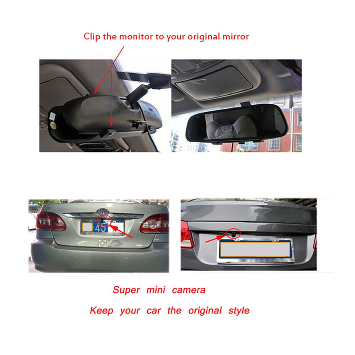 Mini size; Easy to install on car behind. Get an instant view on what happens around your vehicle. compatible with most vehicle.