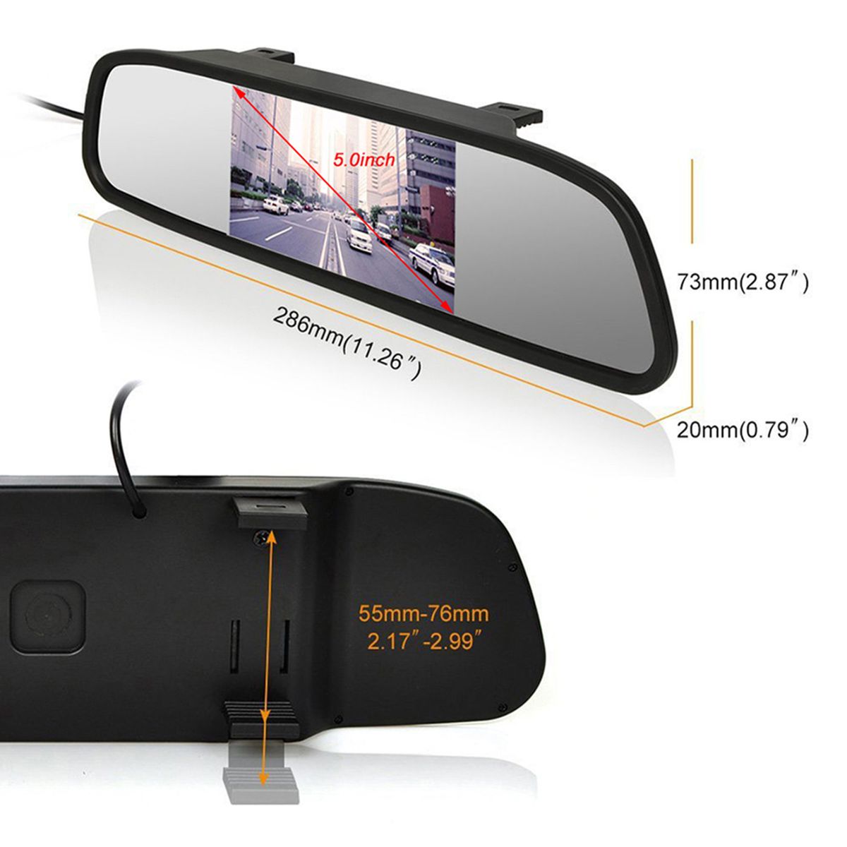5-inch color TFT LCD on-board rear view monitor, perfectly matches with the car rear view camera.