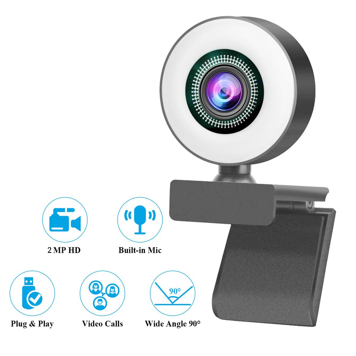 【Adjustable Ring Fill Light】 Webcam with 3 brightness levels, delivering different lighting requirements for your video chatting or streaming. Reduce particles and bring details in the dark environment.