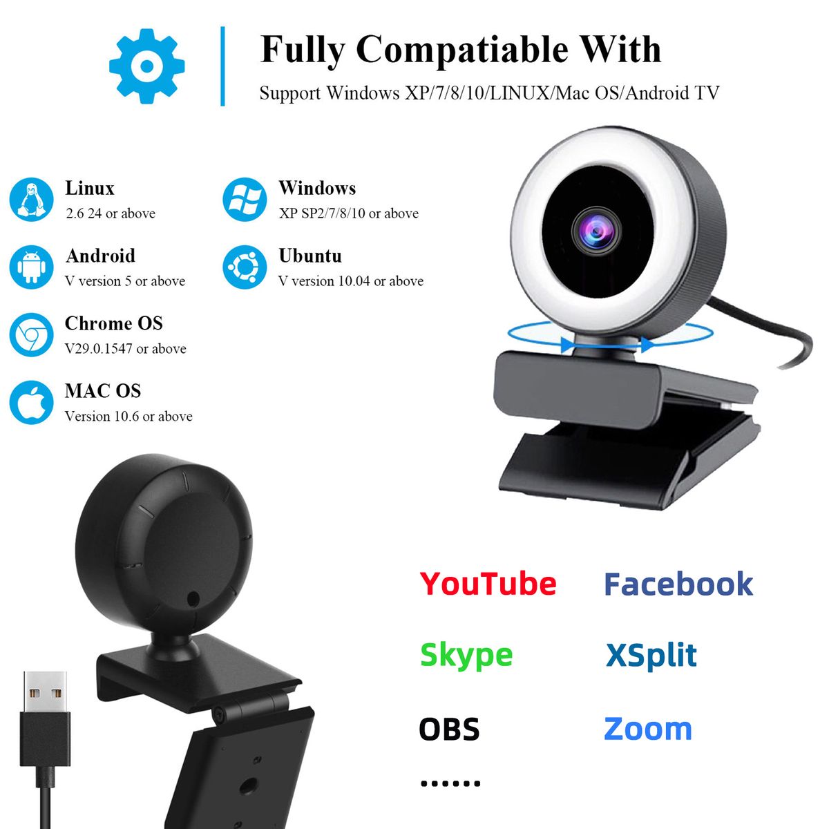 【Widely Compatibility amp; Multi-Application】Widely Compatible with most mainstream video applications, such as Zoom, Skype, YouTube, Facebook, Facebook Live, etc. Works with common systems like Windows XP/2000/7/8/10, Mac OS, Smart TV, etc.