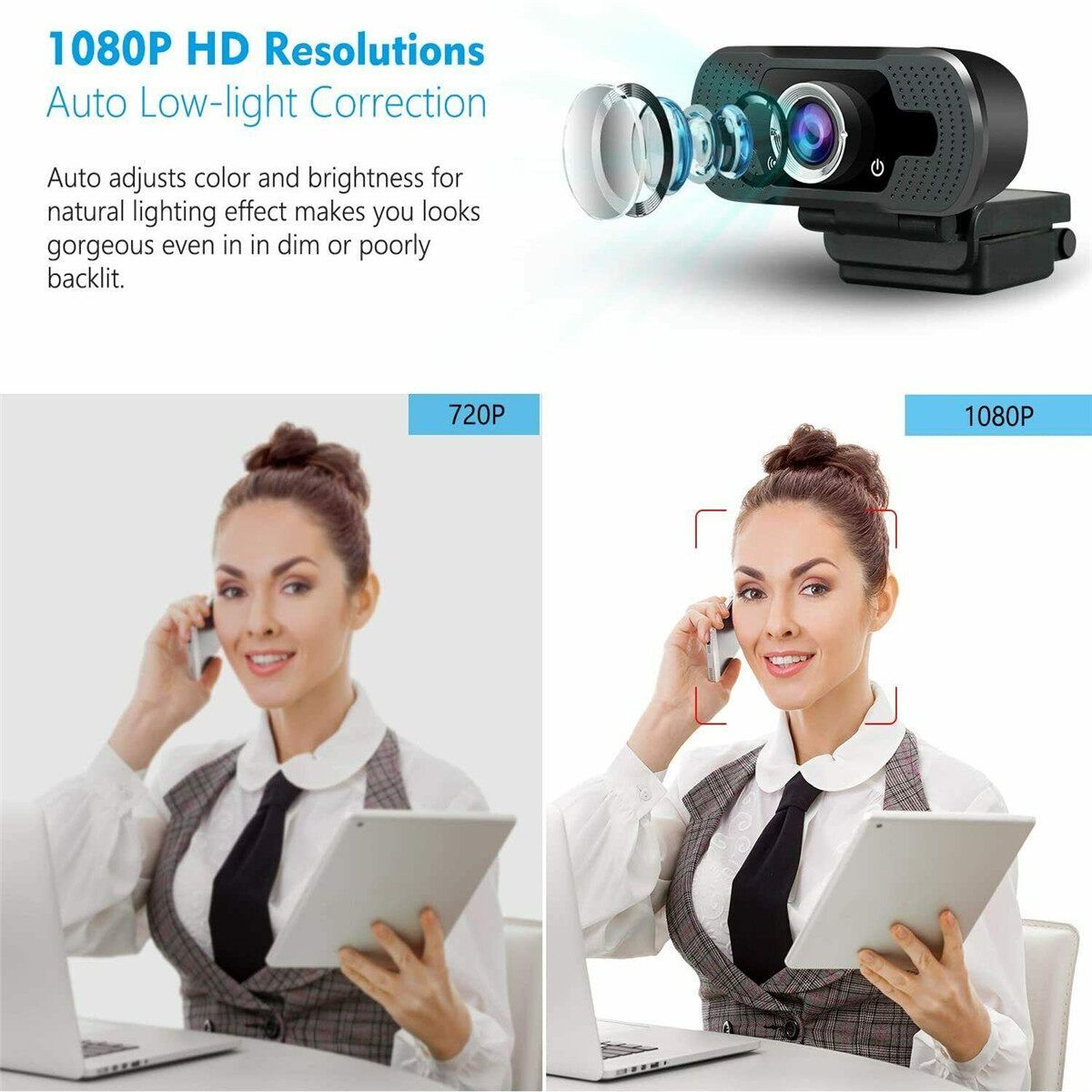 - Full HD 1080P Webcam with Light Correction, 2.0 Megapixel and 1080P web camera with FULL HD glass lens deliver Sharp and Crystal Clear video at a 30 frames/sec. Thanks to Automatic Light Correction and HDR technology, Computer webcam auto adjusts and brightness for natural lighting so you always look your best on web camera even in light.