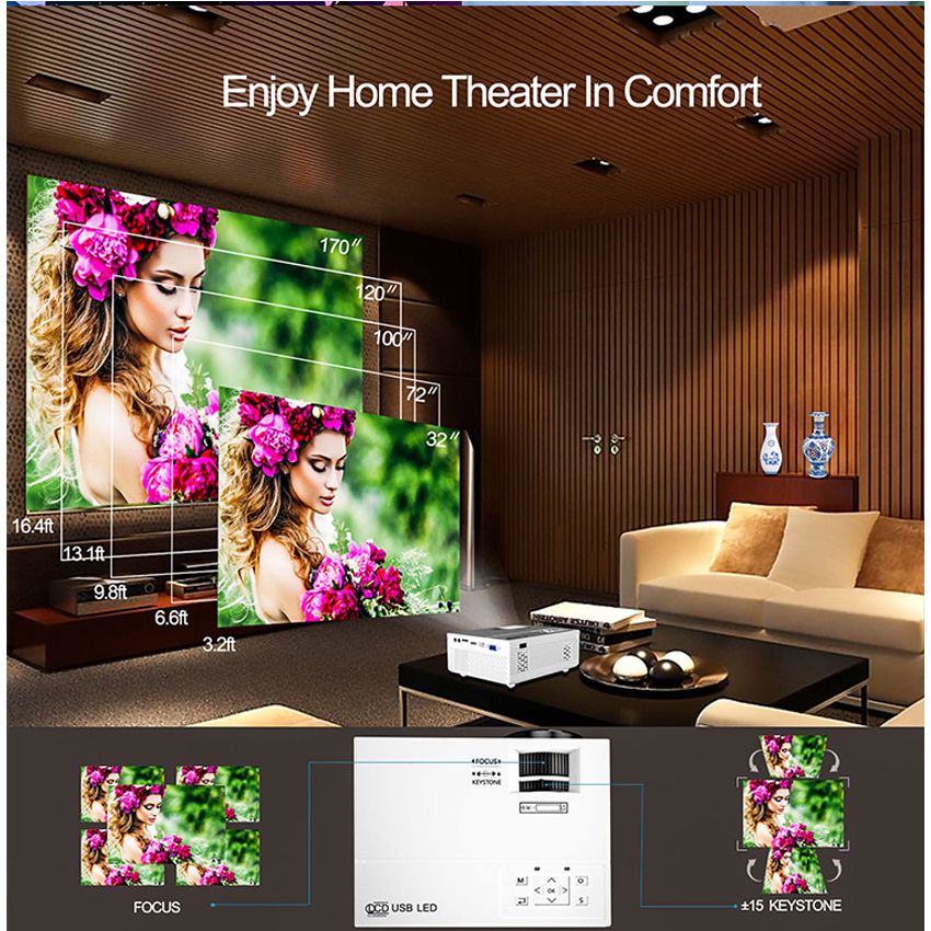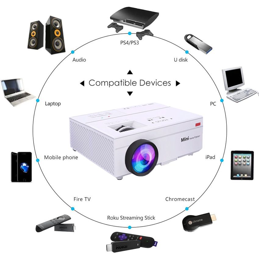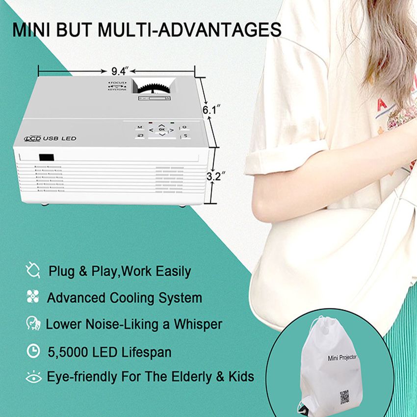 Portable movie projectors are suitable for playing videos, TV series, photo sharing, football games and more. Can easily connect laptop, smartphone, tablet, USB drive, X-BOX ONE to enjoy big game