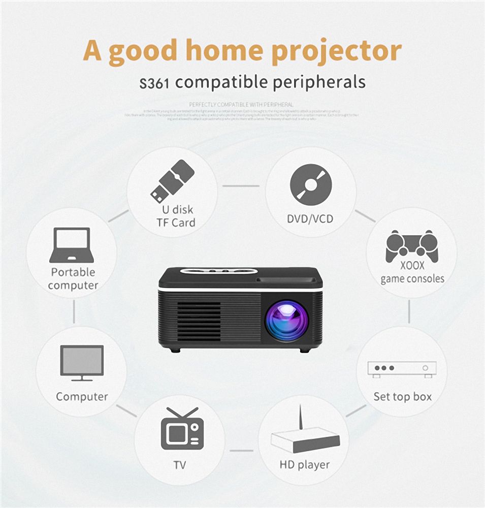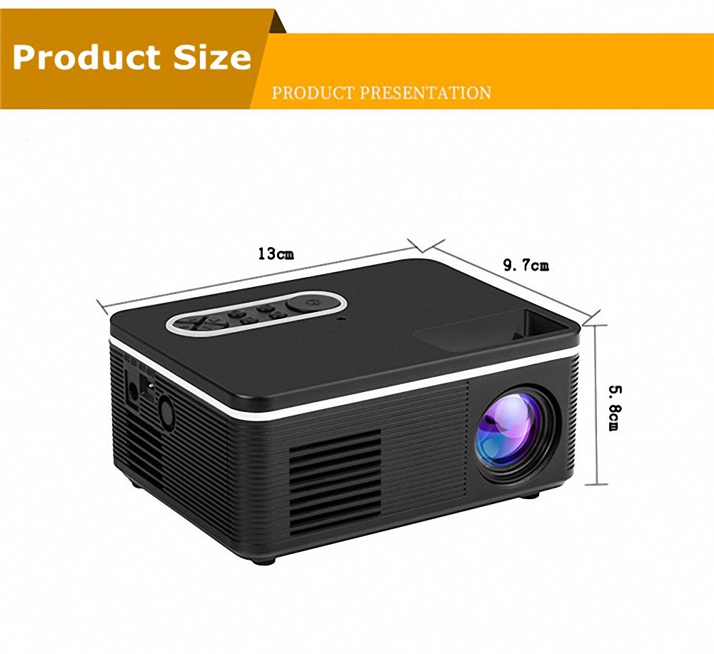 【Small---Mini Projector】The projector is a small and portable projector, try this instead of a TV, because its item size is small and the projection size is large! It's easy to take with you wherever you go, making it easy to watch movies or play video games wherever you go. You can use it in your backyard, living room. It also fits easily into a small dorm, regular-sized conference room or kids room. All in all, this projector is so small and very user-friendly!