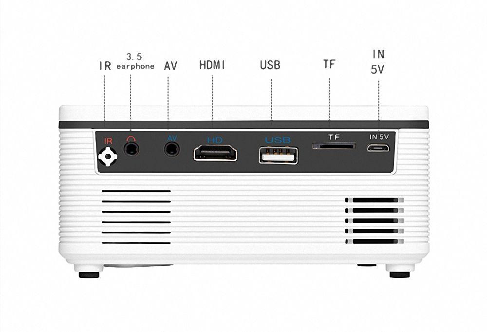 - [High Brightness and Resolution and Wide Compatibility] Don't be fooled by the size, the quality is at the level of other expensive projectors! It does produce a clear and bright picture! 60 ANSI, over 6500 Lux is brighter than other 2.4" mini projectors and can match other 4.0" mini projectors. The native resolution is increased to 854*480, and 1080P is supported to present colorful picture quality. Includes HDMI, USB, TF card and AV interfaces for various inputs.