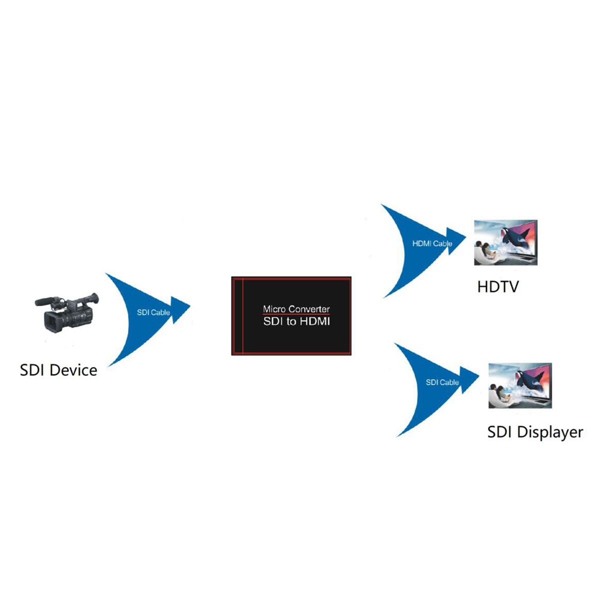 Our Micro SDI to HD Multimedia Interface converter allows HD-SDI and 3G-SDI signals to be shown on HD Multimedia Interface displays while ensuring high bit rates of 2.970 Gbit/s.Function: Easier to distribute and extend your 3G SDI signal while giving you the ability to display your work on HD Multimedia Interface displays thanks to the built in HD Multimedia Interface converter. Operation at 2.970Gbit/s, 1.485Gbit/s.Supports SMPTE 425M, SMPTE 424M, SMPTE 292M, SMPTE 259M-C. In/Output Resolution: 720p\1080i\1080p. Connect with other units to extend your signal over long distances.