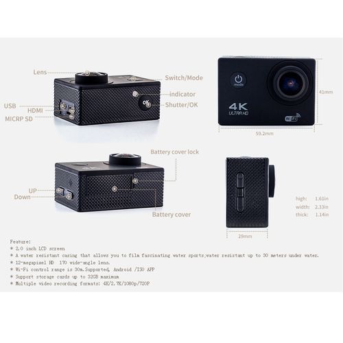 Buy 1080p Sports Wifi Camera 4K Digital Video Camera 30m Waterproof HD Camcorder 2.0' Screen in Nigeria