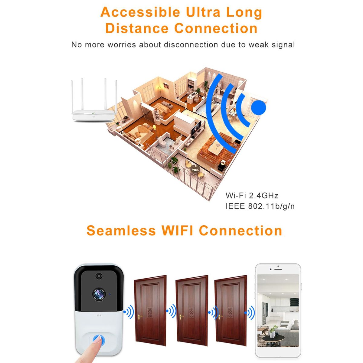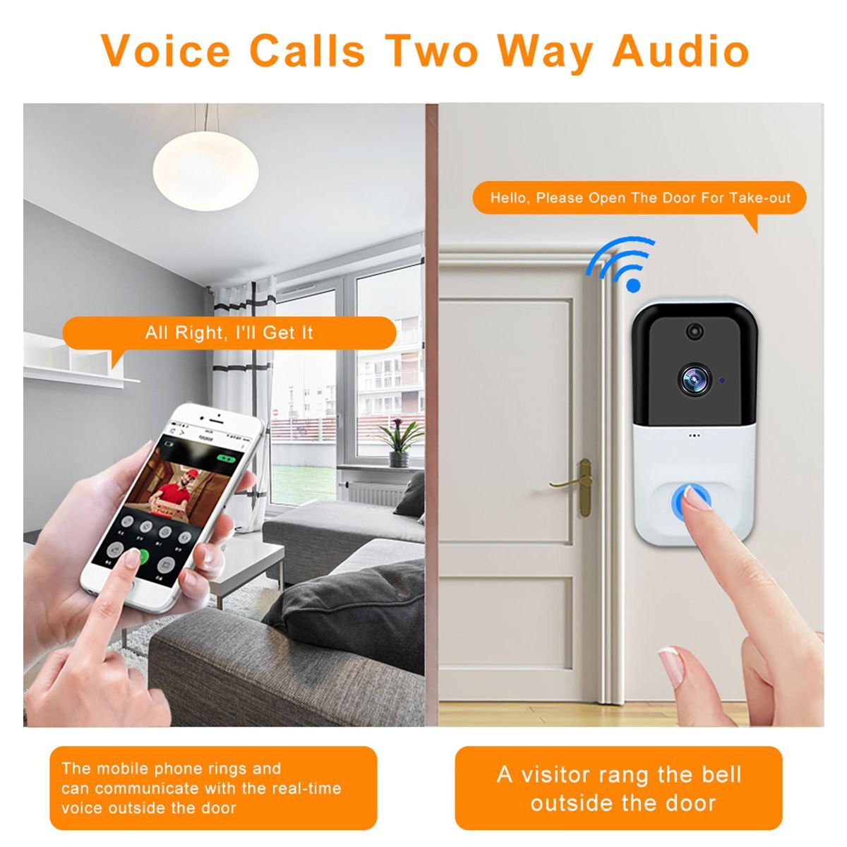 Buy 1080P Wireless WIFI Video Doorbell Security Camera with Night Vision Two-way Audio PIR Motion Detection Remote Access with 3pcs batteries in Nigeria