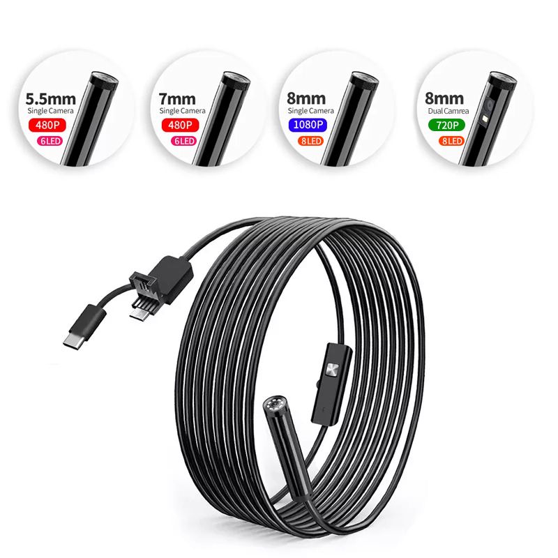1X 1080P/640P USB Endoscope Camera 3 in 1 USB/Micro USB/Type-C Endoscope Camera Borescope with 8 LED for Samsung Huawei