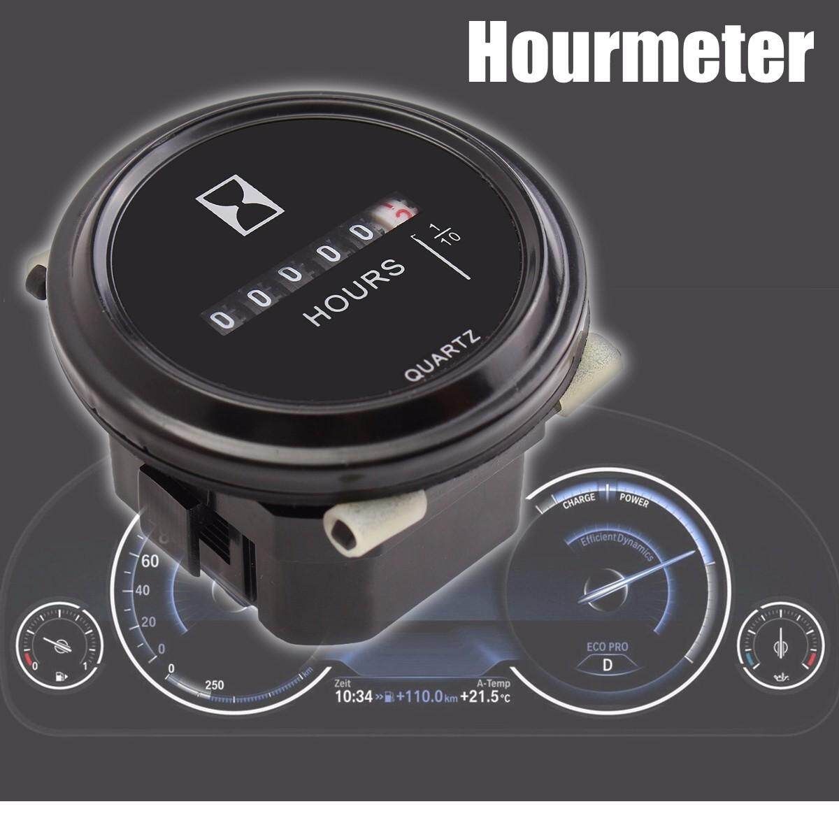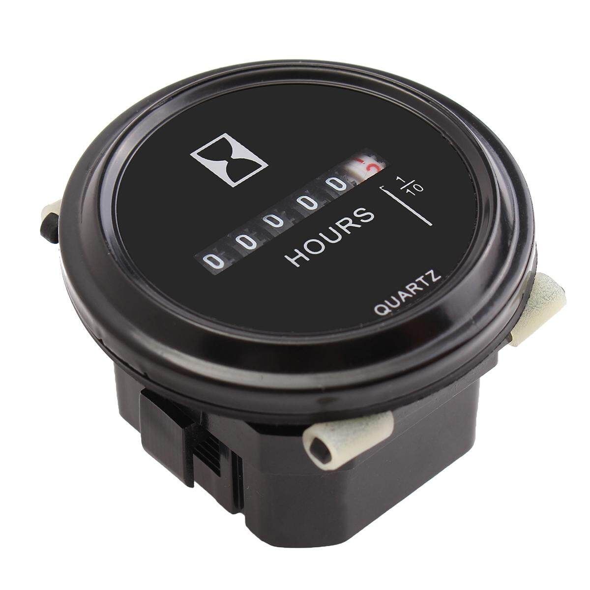 This round hour meter can be used for tracking time on machinery such as boats, cars, trucks, tractors or any device where time is used to determine oil change intervals, service requirements or where there is a need to record hours operated.