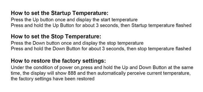 long press UP button the temperature display Flashing , press the UP or Down button Set the start temperature value