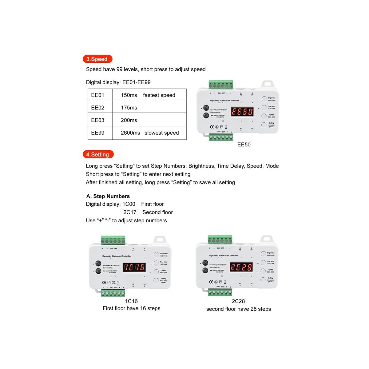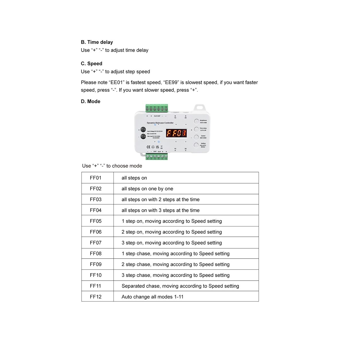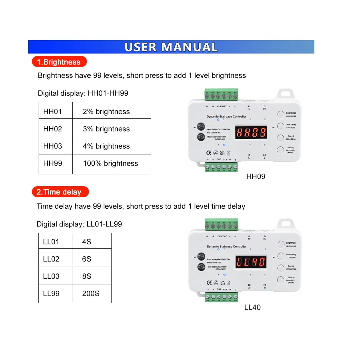 Support adjusting mode, brightness, delay, speed Product parameter: Product Name: Smart LED Stair Step Light Dimming Controller