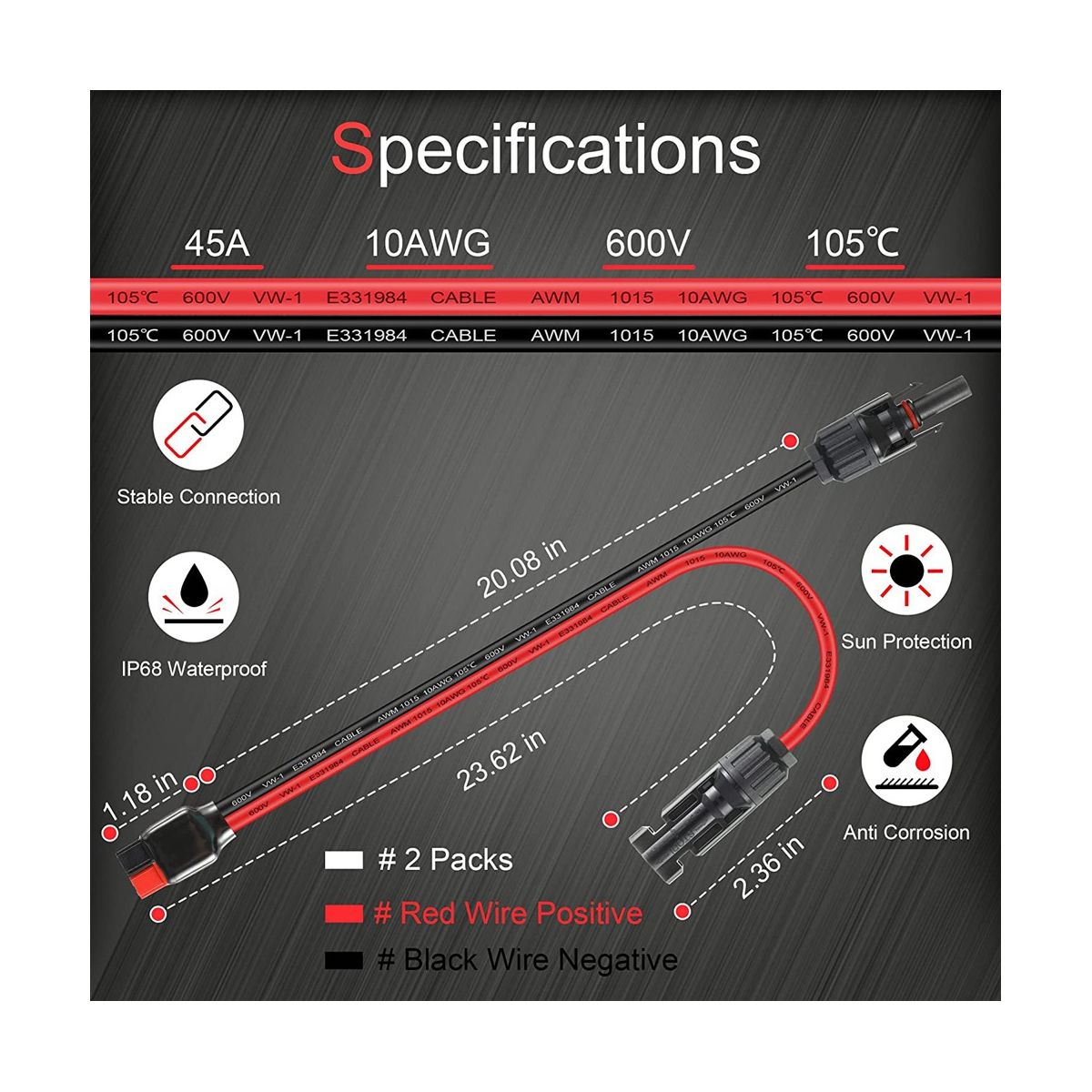 This solar panel connector cable requires no tools and is plug and play for outdoor use in solar generators portable generators solar power stations solar battery UPS batteries batteries electric golf carts and forklifts