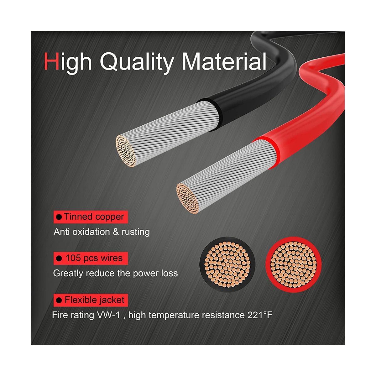 The wire core is tinned with copper which provides a stable current while preventing oxidation and prolonging service life