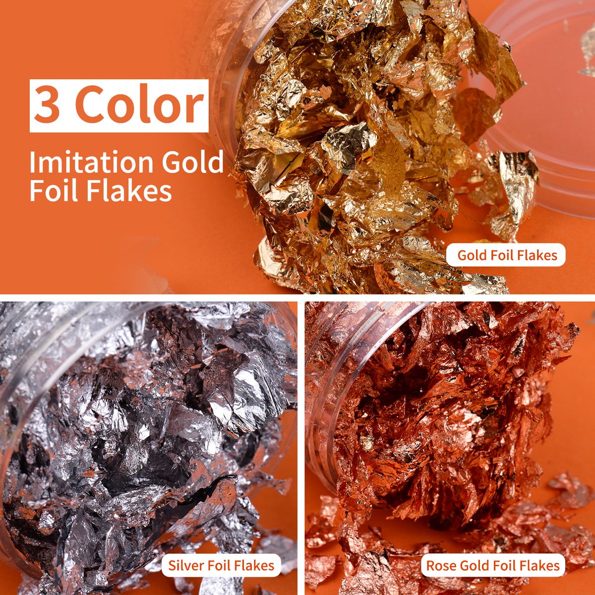Imitation gold foil flakes can produce amazing shiny texture effect, make your furniture and handicrafts look absolutely special.