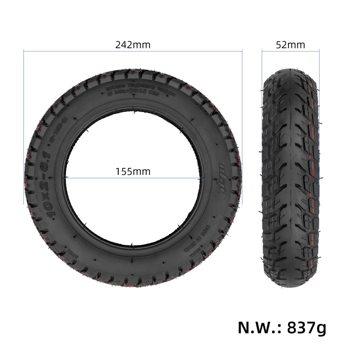 Off-Road Capabilities: As a 10 x 2-6.1 off-road tubeless tire, it offers a comfortable and trackslip ride.